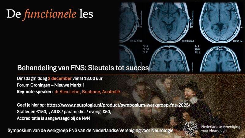 Op dinsdagmiddag 2 december 2025 organiseert de NVN-werkgroep Functionele neurologische stoornissen (FNS) het symposium: De functionele les – multidisciplinaire sleutels tot succes.